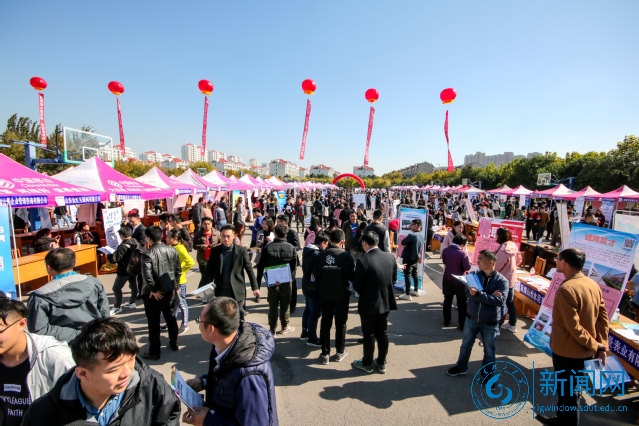 本网讯 10月27日,我校2019届毕业生供需见面会在西校区第三体育场隆重举行,来自9个省(直辖市)50多个地市的900余家用人单位携36000多个岗位前来招贤纳士,吸引了近万名我校及省内兄弟高校的毕业生前来应聘。