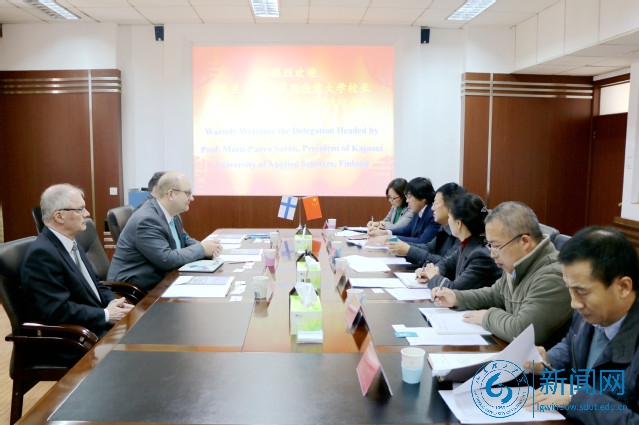 本网讯 11月21日,芬兰卡亚尼应用科技大学校长马蒂帕沃·萨伦一行3人来我校访问,校长张铁柱与客人进行了座谈,国际合作与交流处、资源与环境工程学院、创新创业学院负责人参加座谈。