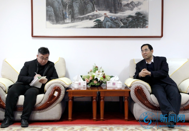 校党委书记吕传毅在鸿远楼八楼接待室会见各位记者,并就人才队伍建设、综合改革、校地融合发展、人才培养模式创新、省局共建发展等方面接受专访。