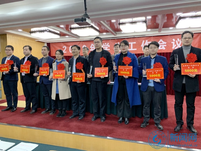 与会领导及部门负责人为学校首批班级建设先进单位、2018年度易班优秀学生工作分站颁发了奖牌,为2018年度奥琦玮十佳辅导员颁发了奖杯和奖金。