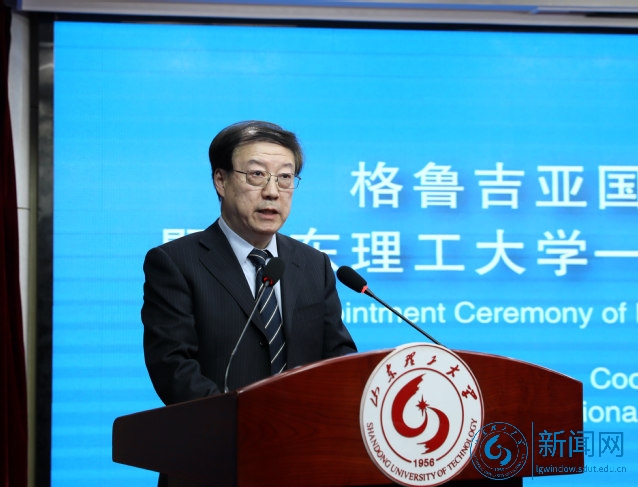 刘树军在讲话中指出,近年来,山东理工大学积极响应省委、省政府号召,大力实施“人才优先战略”,坚持“高端引领、整体开发、服务发展”这一主线,不断强化高层次人才队伍、教师队伍、人力资源管理三个体系建设,全职引进了以兰玉彬、郑宏宇教授为代表的一大批学科领军人才。张铁柱、兰玉彬两位教授当选为格鲁吉亚国家科学院外籍院士,山东理工大学与格鲁吉亚国家科学院在深入推进科学研究、教学国际化方面还将迈出实质性步伐。他希望山东理工大学聚焦我省新旧动能转换等重大发展战略,引进、留住、用好各类高层次人才,进一步拓展国际交流合作,尽快建成国内一流、国际知名高校。