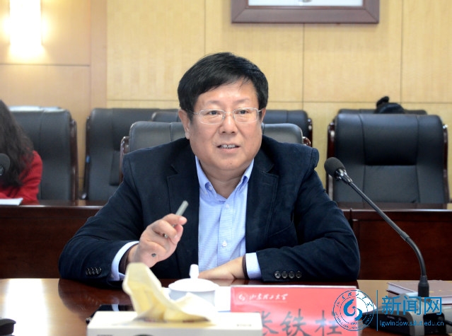 张铁柱代表学校对李东一行的到来表示欢迎,并简要介绍了学校的历史沿革和发展概况,从高层次人才引进、科研项目、省局共建、成果奖励、校城融合发展、科技体制改革等方面详细介绍了近期学校事业发展取得的主要成绩以及在人才培养方面的创新做法。
