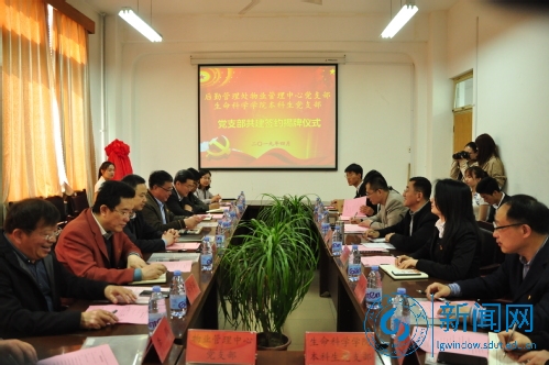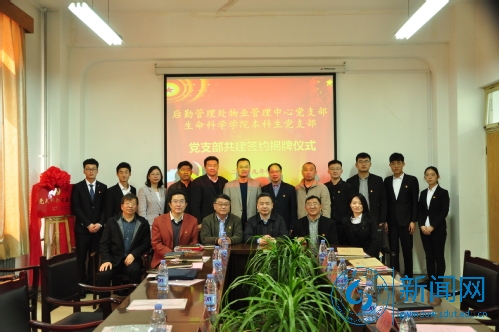 本网讯 4月17日上午,生命科学学院本科生党支部与后勤管理处物业管理中心党支部共建签约仪式在13号教学楼248室举行,校党委常委、副校长查玉喜出席仪式,后勤管理处、生命科学学院、物业管理中心负责人以及两支部成员代表参加仪式。