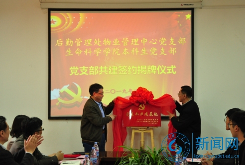 共建仪式上,两支部代表签署了共建协议书。物业管理中心负责人向生命学院本科生党支部赠送《习近平在正定》等书籍。后勤处相关负责人为生物工程系主任徐恒戬老师颁发园林技术顾问聘书,生命学院相关负责人为胡丽丽颁发专业实践指导教师聘书。后勤处、生命学院负责人为共建基地揭牌。