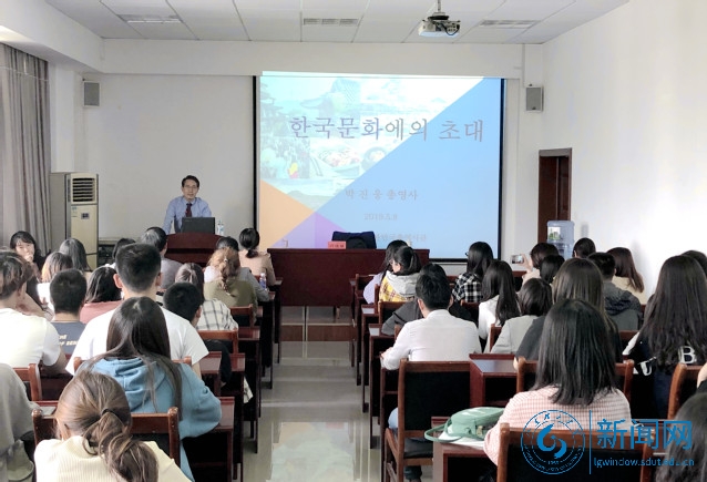 会见后,在外国语学院负责人陪同下,朴镇雄一行参观了外国语学院网络化语言教学实训室、云网络实训室、同声传译会议训练实训室等教学场所,并与韩语系教师作了交流。随后,朴镇雄为外国语学院师生作了题为“韩国文化的荟萃”的报告。