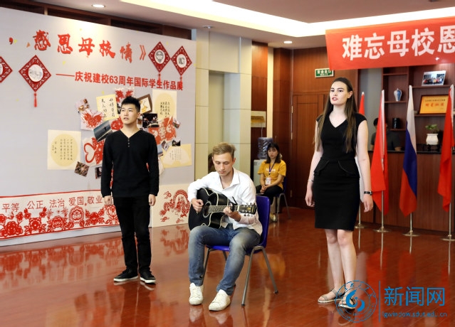 本网讯 5月23日下午,“难忘母校恩,感恩母校情”庆祝建校63周年国际学生作品展在学生学习与发展指导中心举行,校党委书记吕传毅,党委副书记衣玉琛,以及相关部门负责人兴致勃勃地参观了作品展,并观看了国际学生带来的精彩演出。