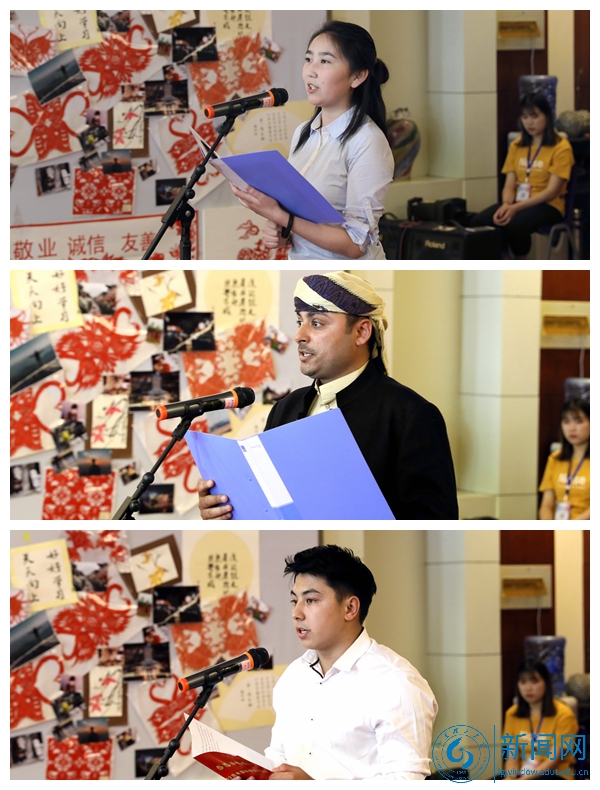 国际学生代表米迪娜、河山、小龙先后作了发言,回忆了在校求学的经历,感谢母校和老师的辛勤培养,并祝愿学校明天更加灿烂辉煌。