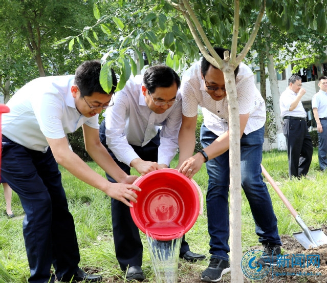 本网讯 初夏的校园生机盎然,5月26日学校迎来63岁生日,上午9时,伴着稷下湖的水光山色,学校在杏园宾馆东侧举行“校友林”启动仪式,学校领导与校友代表共同种下山东凯创智慧城市设施有限公司校友捐赠、充满爱心的大叶丝棉木树苗。