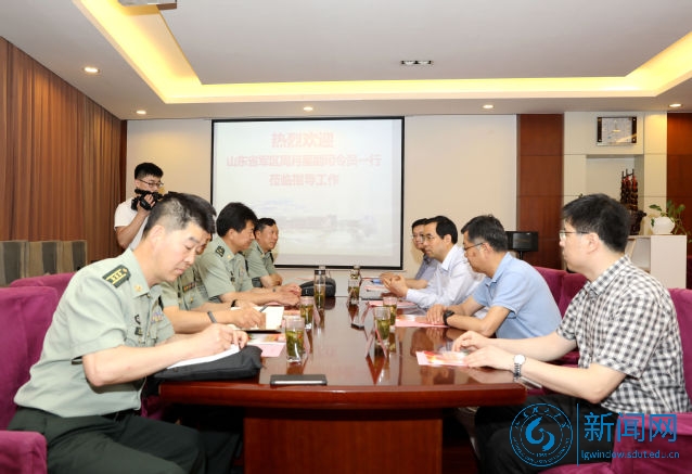 本网讯 6月6日上午,山东省军区副司令员周月星一行3人,在淄博军分区司令员王培泉等陪同下来校,就国防教育及征兵工作进行调研。校党委书记吕传毅,党委常委、副校长张祥云,相关部门负责人等,在大学生事务中心106室与周月星一行进行了座谈。
