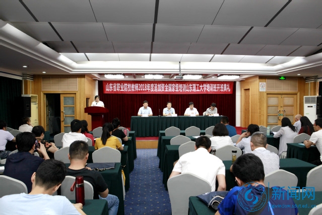 本网讯 6月17日,山东省职业院校教师2018年度追加资金国家级培训项目开班典礼在我校杏园宾馆二楼会议室举行。我校省职教师资培训中心、项目承办学院有关人员、教学督导员、部分授课教师以及来自山东八市近百名参训中职教师参加典礼。