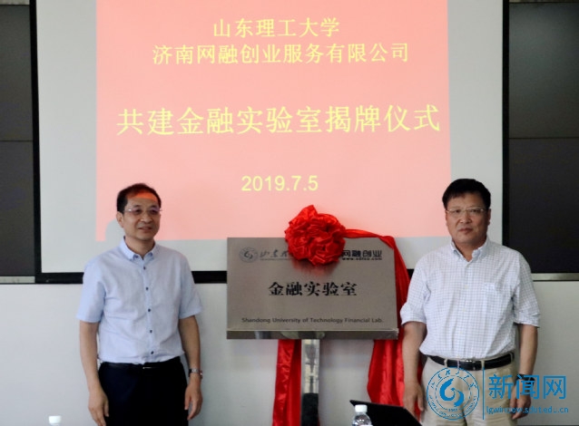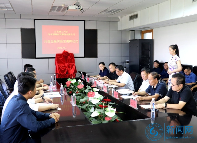 本网讯 7月5日上午,学校与济南网融创业服务有限公司共建金融实验室揭牌仪式在鸿远楼七楼室举行。校党委常委、副校长易维明,济南网融创业服务有限公司董事长王善新、总经理刘虎城出席仪式,学校教务处、资产管理处、实验管理中心负责人,以及经济学院领导班子成员、金融学系专业教师代表参加仪式。