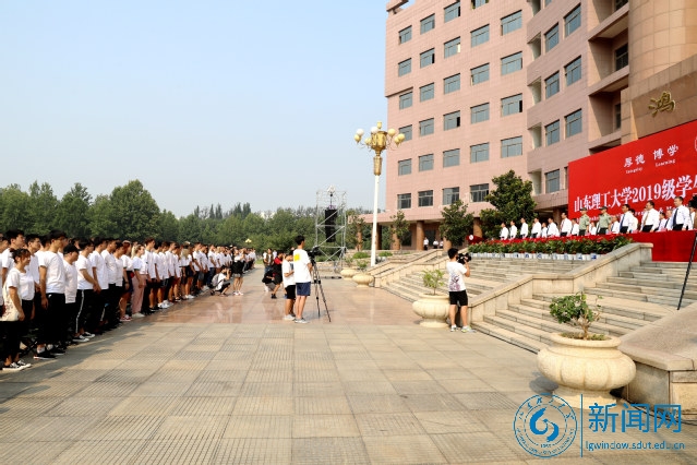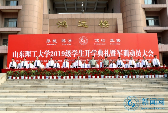 本网讯 金秋时节,硕果盈枝。9月2日上午,学校在鸿远楼前广场举行2019级学生开学典礼暨军训动员大会,一万余名正值芳华、朝气蓬勃的新同学成为山理工新成员,开启人生新征程。
