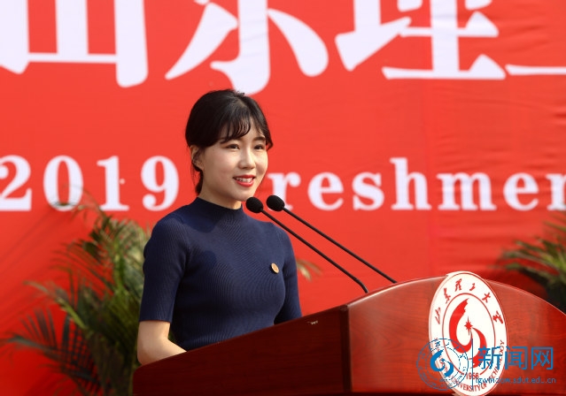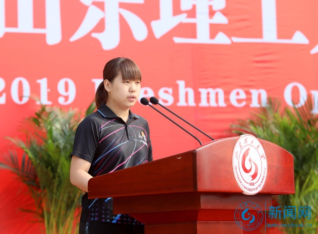 第二届全国青年运动会乒乓球比赛女子单打冠军、混双冠军,体育学院运动训练专业2019级本科生王丽倩代表全体新生发言,介绍了自己从小练习乒乓球直至实现冠军梦、大学梦的艰辛历程,并表示在即将开始的军训中,坚定信念,刻苦训练,圆满完成军训任务;在今后的大学生活中,谨记“厚德、博学、笃行、至善”的校训,订立学习小目标,铸就成才大梦想,勇担青春新使命,争做可堪重任的“五有”人才。