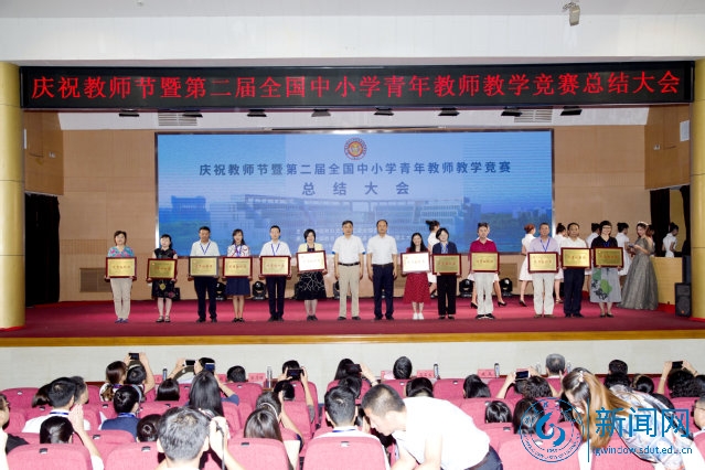 9月3日上午,在学校3号教学楼报告厅举行庆祝教师节暨第二届全国中小学青年教师教学竞赛总结大会,中国教科文卫体工会主席章国贤、教育部教师司教师发展处处长王薇、山东省总工会经费审查委员会主任蒋石宝、山东省教育厅(省委教育工委)二级巡视员张士俊、中国教科文卫体工会副主席钱磊、山东省教育工会主席宋志明、淄博市副市长王可杰、我校党委书记吕传毅、党委副书记衣玉琛、副校长魏修亭出席会议。全体评委、领队、参赛人员、志愿者和竞赛工作人员300余人参加了大会,参会领导向获奖集体和个人颁奖。中国教科文卫体工会主席章国贤、校党委书记吕传毅、淄博市副市长王可杰分别讲话。评审委员会主任、华东师范大学教授范良火对本次赛事进行了点评。