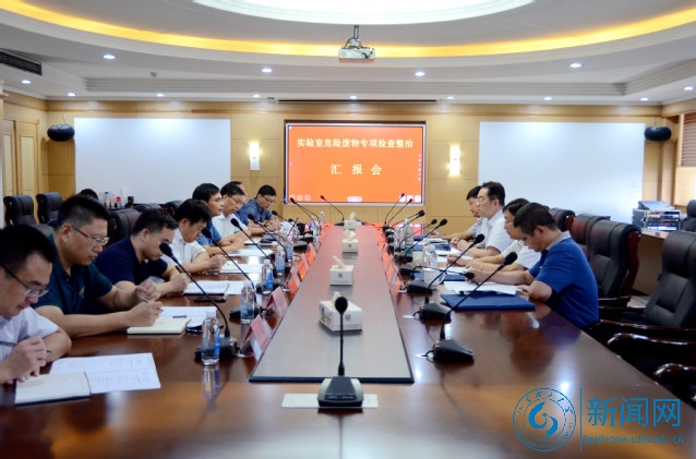 实验管理中心负责人从实验室建设情况及主要功能、实验室危险废物的管理、存在的问题三个方面就实验室危险废物方面的有关工作情况作了汇报。