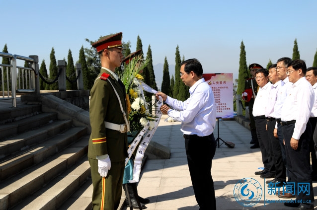 党委书记吕传毅整理缎带,向革命烈士纪念碑敬献花篮。吕传毅带领党委常委、党委委员面向党旗庄严宣誓,重温了入党誓词。大家依次瞻仰了纪念碑,并向纪念碑献花。