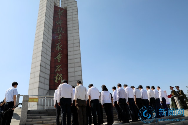 初秋的烈士陵园翠柏如洗、庄严肃穆,革命烈士纪念碑巍然矗立。学校党委常委、党委委员缓步走上台阶,面向烈士纪念碑行鞠躬礼,全体肃立,为革命烈士默哀,表达了对革命先烈的无限缅怀和追思。
