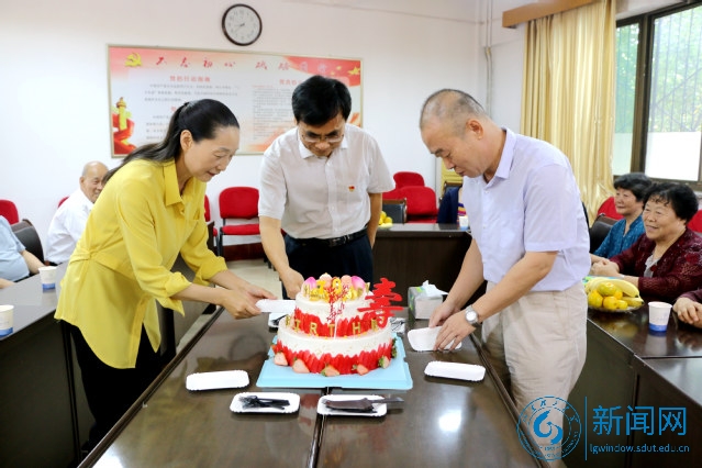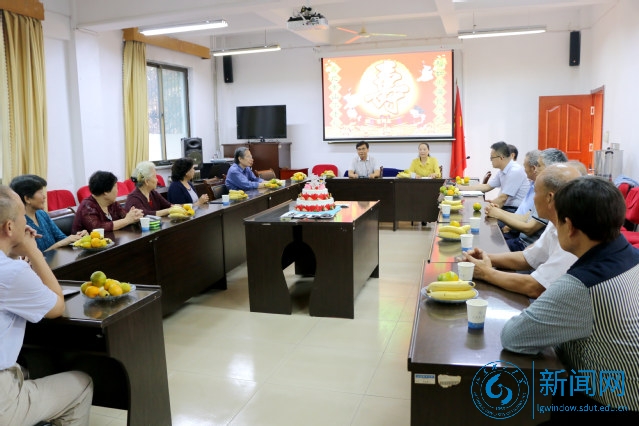本网讯 9月30日上午,在国庆、重阳双节来临之际,我校在离退休处会议室举行了一场特殊的生日会,15位与共和国同龄的离退休老同志欢聚一堂,集体庆祝70周岁生日。校党委副书记胡兴禹和离退休处相关人员来到活动现场为老同志祝寿。