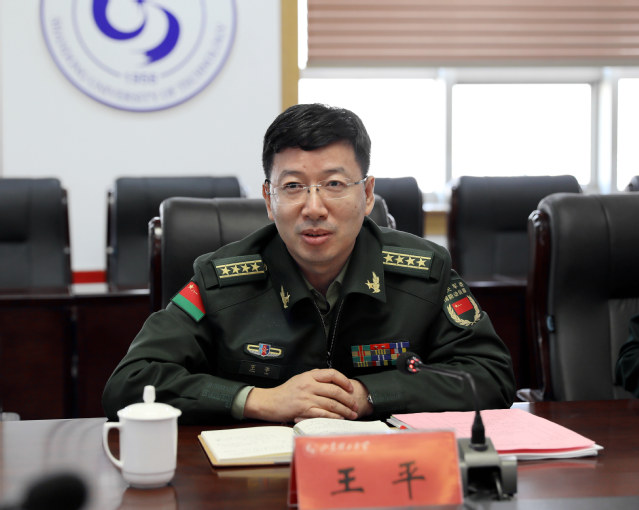 王平对我校国防教育和征兵工作给予充分肯定。他说,学校办学成绩突出,为国防事业做出了积极贡献。学校党委高度重视国防教育和征兵工作,相关部门工作扎实,国防教育内容丰富,国防教育主题园、冯思广班、国防教育学生委员会、“一站式”征兵服务站、“易参军”征兵服务系统、征兵宣传“五个一”措施、分年级分类别精准动员体系等工作很有特色、富有创新。他希望学校以习近平强军思想为指导,不断总结经验,争取更大成绩,早日建成有特色、高水平、国内知名的教学研究型大学。