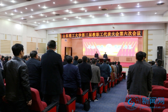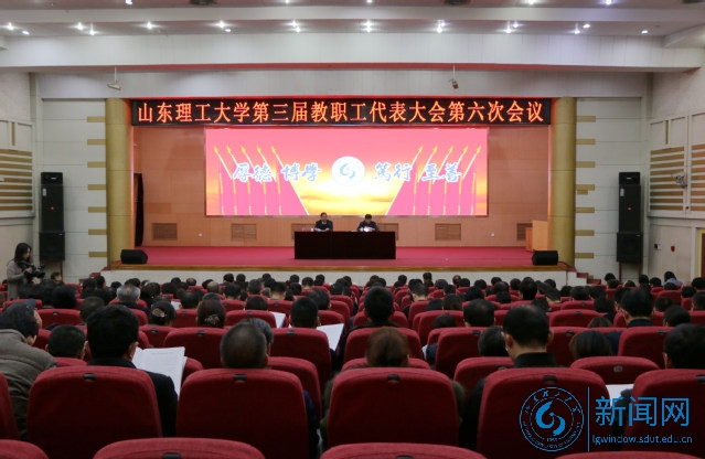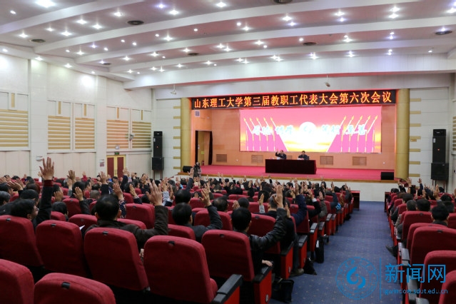 11月19日下午,学校在3号教学楼报告厅召开第三届教职工代表大会第六次会议,审议通过《山东理工大学章程修正案(草案)》。校领导吕传毅、张铁柱、衣玉琛、胡兴禹、刘国华、张祥云、魏修亭、查玉喜、张金生出席会议,200余名正式代表参加会议。