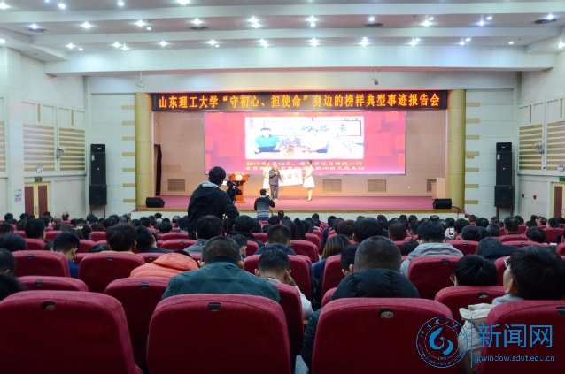 本网讯 11月27日下午,3号教学楼报告厅内不时响起热烈掌声,学校在此举行“守初心、担使命”身边的榜样典型事迹报告会,教育引导师生向先进典型看齐、向身边榜样学习,激励广大师生践行初心和使命。