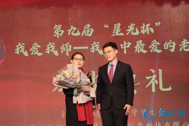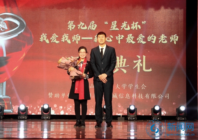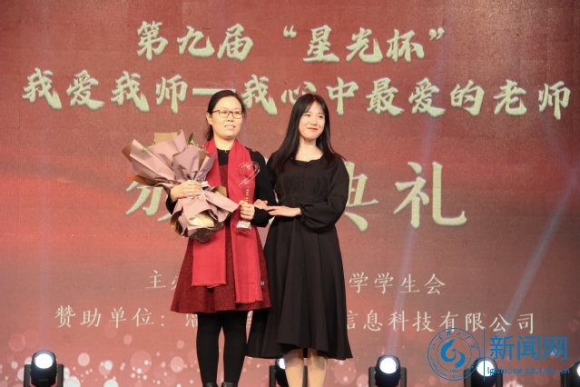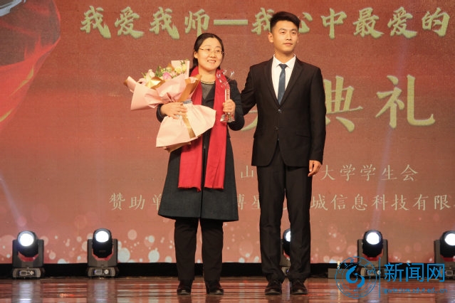 颁奖仪式上,学生代表为获得本届学生“心中最爱的老师”称号的资源与环境工程学院丁成武、鲁泰纺织服装学院丁作伟、计算机科学与技术学院刘刚、管理学院孙秀梅、电气与电子工程学院齐晓妹、音乐学院张玉青、建筑工程学院李素蕾、机械工程学院陈宗民、外国语学院陶新慧、化学化工学院黄昊飞等十位老师,献上鲜花、颁奖,代表广大同学表达感激与祝福。