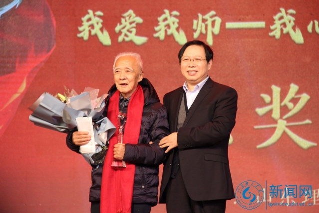 典礼上,还为张元成老师颁发了“我爱我师——我心中最爱的老师”特别奖,张元成用“青出于蓝而胜于蓝”评价我校教育事业发展,并带领大家致敬青年教师,致敬莘莘学子。