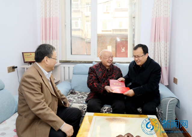 本网讯 1月17日恰逢农历春节前的北方小年,上午,山东省委老干部局副局长李学忠一行2人,在校党委常委、副校长王立斌及党委(校长)办公室、离退休工作处负责人等陪同下,来到老红军秦师家中,看望慰问秦老并送上新春祝福。
