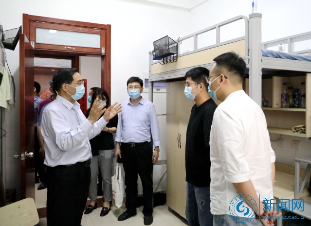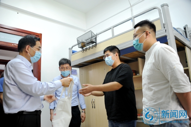 随后,校领导来到研究生公寓A座,查看返校学生住宿情况。吕传毅走进136房间,与19日来校报到且核酸和血清抗体检测采样合格的两名同学作了交流。吕传毅详细询问了他们的线上学习、身体状况和生活情况,并叮嘱他们返校后生活、学习中的注意事项。