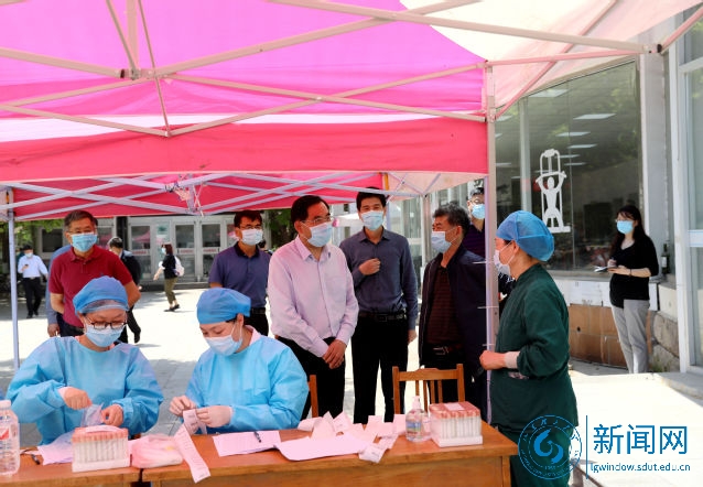 校领导一行先来到西校区北门,现场查看了学生返校测体温、行李消毒、身份核验、核酸和血清抗体检测采样等各个环节,听取了相关部门负责人的情况介绍,并与现场工作人员进行了交流,详细询问工作情况。在查看过程中,吕传毅不时挥手致意,欢迎各位同学返回母校。