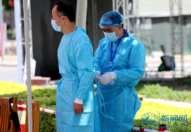 早上5点多,鲁泰纺织服装学院辅导员王晓冬已经来到学校北门,跟同事们互相帮忙系着防护服后面的系带,“穿上这身衣服,我们就是战士。”