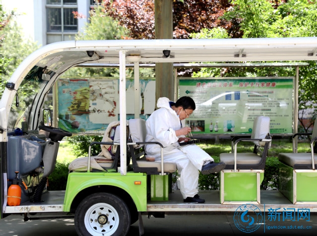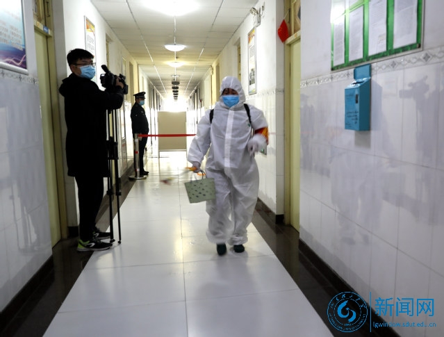 下午3点,宿管员任家瑾认真地对研究生公寓A座的所有公共区域进行消毒,这样的消毒每天两次。“只愿所有孩子都平平安安的。”