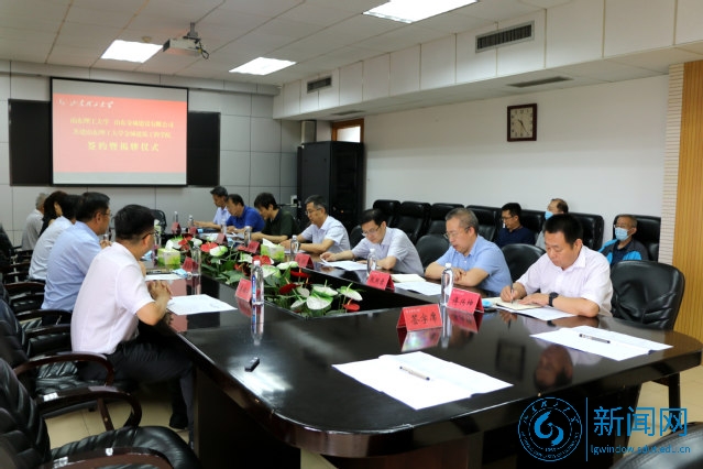 本网讯 6月23日上午,我校与山东金城建设有限公司共建“山东理工大学金城建筑工程学院”合作协议签约暨揭牌仪式在鸿远楼七楼会议室举行。校党委常委、副校长张祥云,山东金城建设有限公司董事长、总经理贾毅出席签约仪式,我校学生工作处、发展规划处、教务处、科学技术处、基建处、建筑工程学院及金城建设有限公司相关负责人参加仪式。