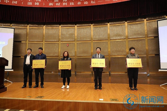 论坛上,我校研究生院负责人为张店区4家企业研究生工作站授牌,我校、青岛科技大学、淄博能源研究院的9项校城融合科技合作项目举行了签约仪式。