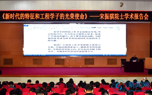 本网讯 10月19日下午,中国科学院院士宋振骐在3号教学楼报告厅为资源与环境工程学院师生,带来一场题为“新时代的特征和工程学子的光荣使命”专题报告会,资环学院领导班子成员、学院师生代表200余人现场聆听报告。