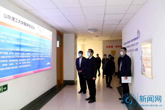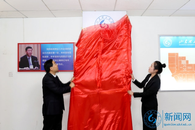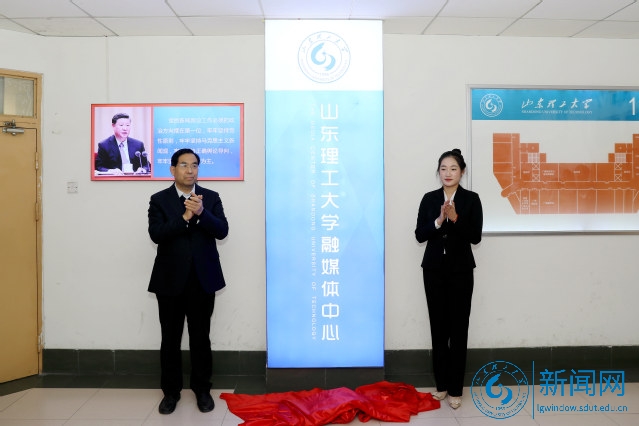 在鸿远楼十楼,吕传毅和学生记者代表共同为“山东理工大学融媒体中心”揭牌。