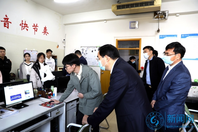 吕传毅一行参观了融媒体中心宣传阵地,听取了工作人员情况介绍,详细询问了各媒体平台的工作情况,他勉励学生记者:“融媒体中心的各个媒体,都是很好的育人平台,同学们要在此认真学习,传承良好传统,不断提升综合素质,努力成长为‘五有’人才!”