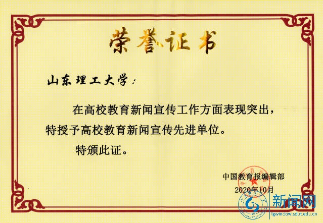 本网讯 近日,中国教育报刊社山东新闻宣传通联工作会议在烟台牟平召开。中国教育报刊社党委书记、社长翟博,山东省教育厅党组成员、副厅长戴龙成出席并讲话。会上,对2020年度高校新闻新闻宣传工作进行总结表彰,安排部署中国教育报山东新闻宣传和通联工作。我校蝉联“年度教育新闻宣传先进单位”荣誉称号。
