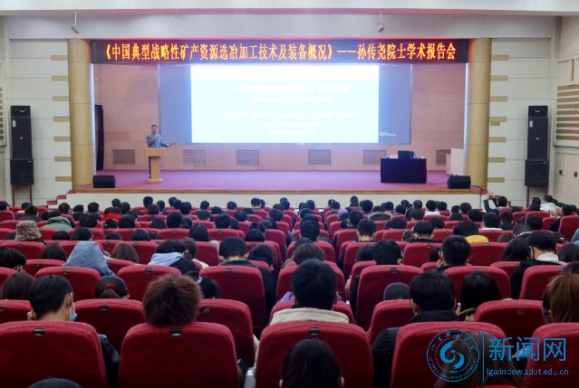 本网讯 应资源与环境工程学院邀请,11月22日下午,中国工程院院士孙传尧在3号教学楼报告厅为资环学院师生作了题为“中国典型战略性矿产资源选冶加工技术及装备概况”的学术报告会。资环学院班子成员、学院师生代表及部分合作企业代表参加报告会。