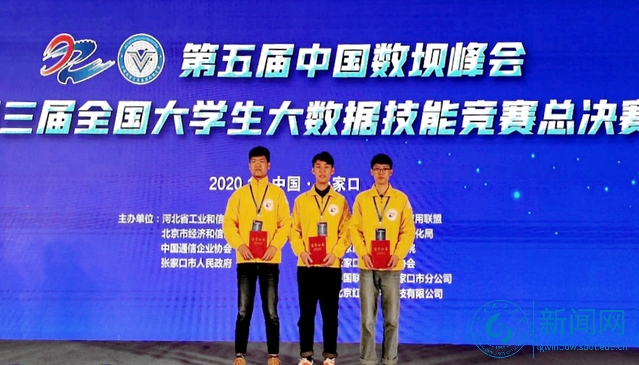 本网讯 近日,“第五届中国数坝峰会”暨“第三届全国大学生大数据技能竞赛总决赛”在河北省张家口市落幕,我校数学与统计学院2018级信息与计算科学系陈常旺、岳喜洲、杨孟超3名同学组建“打败自己就好”代表队荣获全国二等奖,何华、周世祥荣获“优秀指导教师”荣誉称号。