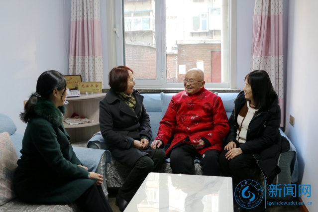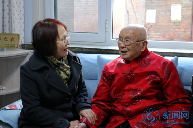 本网讯 12月15日上午,党委常委、副校长刘国华,淄博市委老干部局有关负责同志,在离退休工作处负责人及工作人员陪同下,专程来到秦师家中,为秦老101岁生日送去祝福。