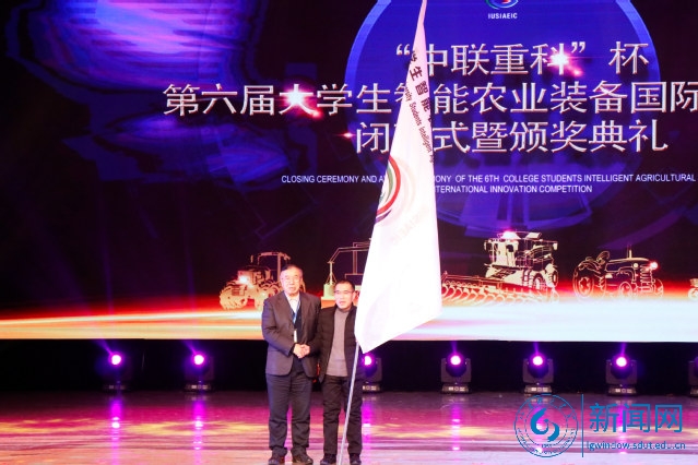 陈学庚宣布第七届大赛将由河北农业大学承办,并移交大赛旗帜。