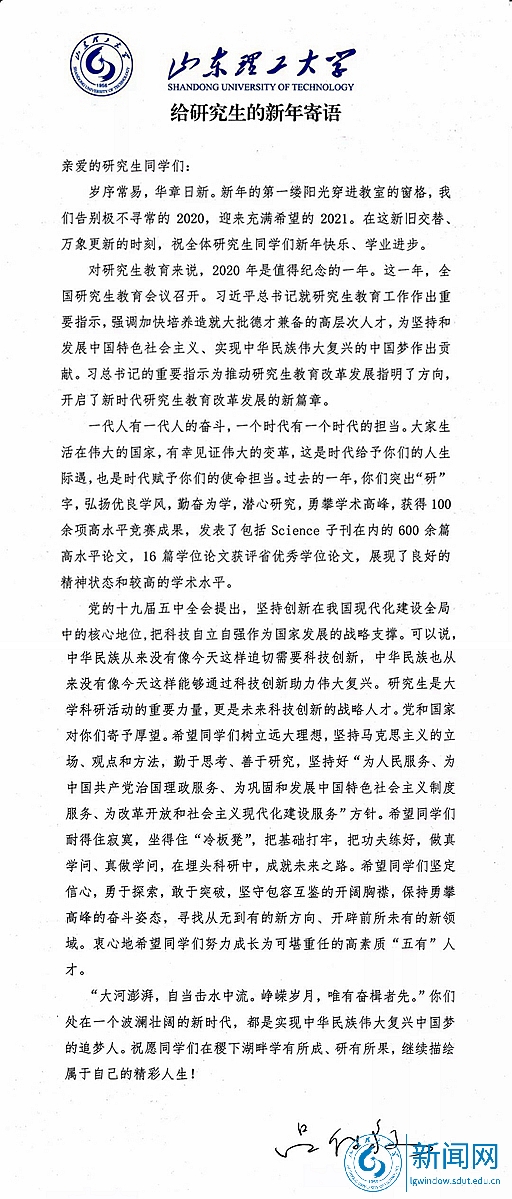 收到吕传毅书记的新年寄语,广大研究生精神振奋、备受鼓舞。
