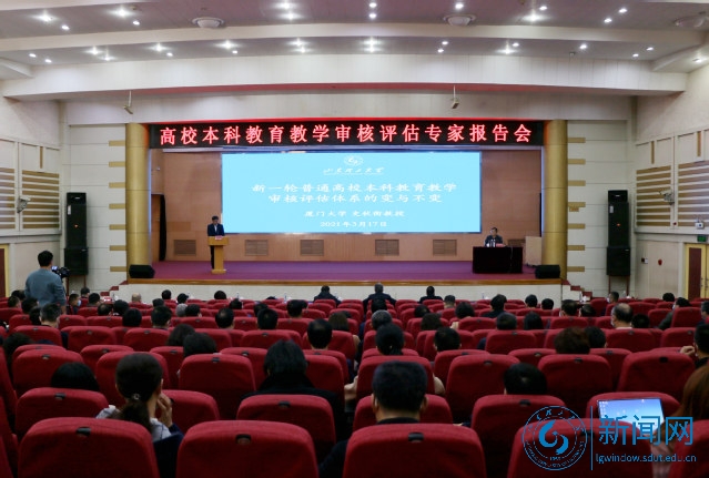 本网讯 为深入贯彻学习《普通高等学校本科教育教学审核评估实施方案(2021—2025年)》文件精神,推动我校审核评估工作,3月17日下午,学校在3号教学楼报告厅举行普通高校本科教育教学审核评估报告会,邀请全国高校设置评议委员会、国家职业教育指导咨询委员会委员,教育部中国教育智库联盟顾问委副主任、厦门大学史秋衡教授,作了题为“新一轮普通高校本科教育教学审核评估体系的变与不变”的报告。