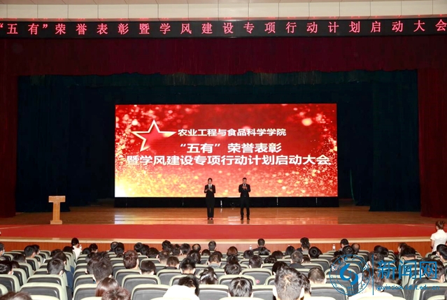 本网讯 4月25日,农业工程与食品科学学院在大学生艺术中心礼堂召开“五有”荣誉表彰暨学风建设专项行动计划启动大会,表彰先进集体和个人,部署学风建设专项行动。党委常委、副校长查玉喜出席并讲话,学生工作处、教务处、研究生院相关负责人,农工学院领导班子成员、教师代表、全体辅导员及学生代表参会。