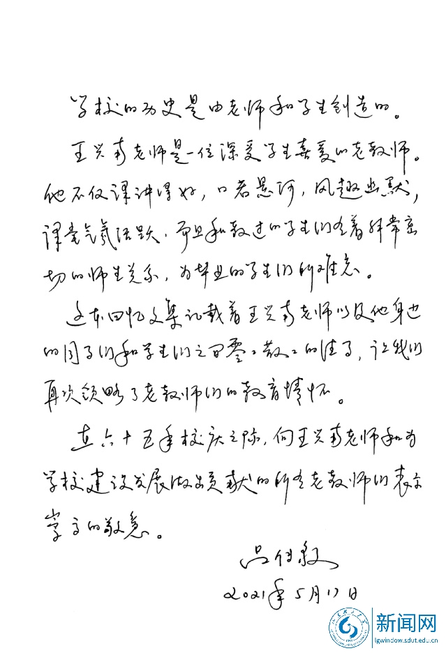 吕传毅为该文集题词说:“学校的历史是由老师和学生创造的。王兴南老师是一位深受学生喜爱的老教师。他不仅课讲得好,口若悬河,风趣幽默,课堂气氛活跃,而且和教过的学生们有着非常密切的师生关系,为毕业的学生们所难忘。这本回忆文集记载着王兴南老师以及他身边的同事们和学生们之间零零散散的往事,让我们再次领略了老教师们的教育情怀。在六十五年校庆之际,向王兴南老师和为学校建设发展做出贡献的所有老教师们表示崇高的敬意。”