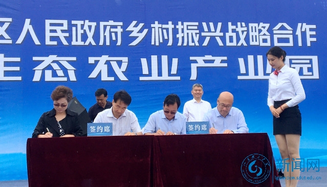 我校服务社会办公室、生态无人农场研究院等单位负责人,淄博市及临淄区相关部门负责人参加签约仪式。