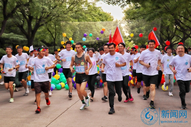 胡兴禹、查玉喜、张金生与师生一同从图书馆南草坪出发,跑过鸿远楼、稷下湖等11个校园地标打卡点,用奔跑的热情为毕业生送上祝福。