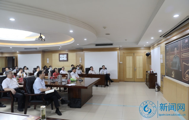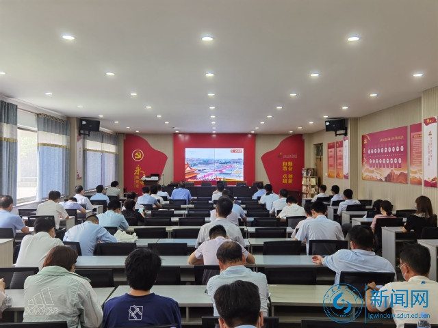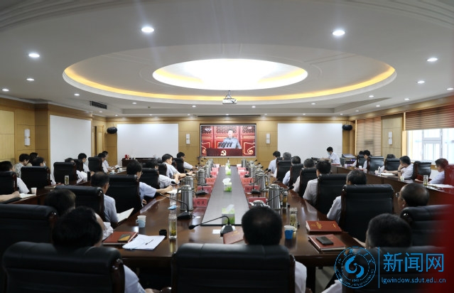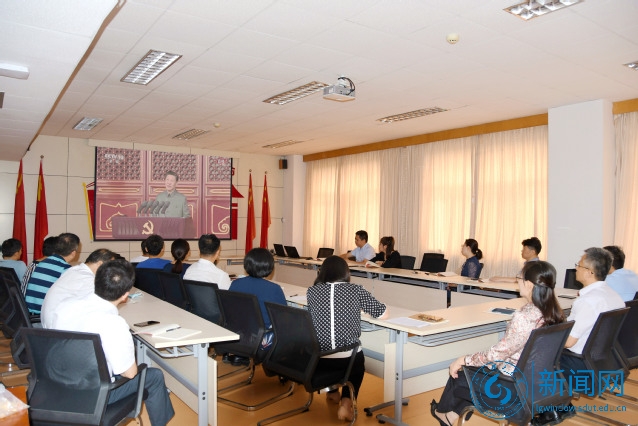 在鸿远楼九楼会议室,校党委理论学习中心组成员通过电视集体观看了庆祝大会直播。他们认真观看,不时做着笔记。