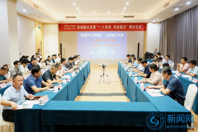 本网讯 7月13日下午,乐陵市—山东理工大学校城融合发展“一人双岗、科技副总”聘任仪式,在乐陵市蓝海钧华大饭店钧乐厅举行。校党委常委、副校长苏守波,乐陵市委常委、组织部部长张因忠,市委常委、宣传部部长盛慧,科技局局长刘艳霞出席,我校服务社会办公室相关负责人、专家教授,乐陵市相关部门负责人、企业家参加仪式,仪式由盛慧主持。